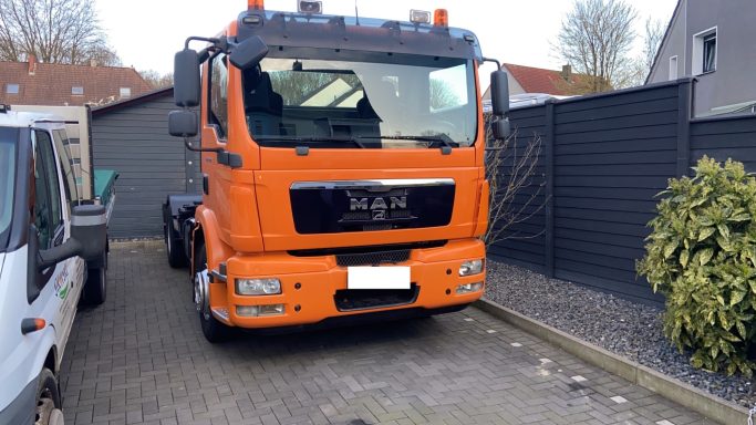 Dank des robusten Abrollsystems können wir verschiedene Containergrößen aufnehmen und exakt dort abstellen, wo sie gebraucht werden – ob im Vorgarten, auf engen Grundstücken oder in großen Außenanlagen. Das bedeutet: weniger manuelles Umfüllen, kürzere Wege und mehr Effizienz auf Ihrer Baustelle.