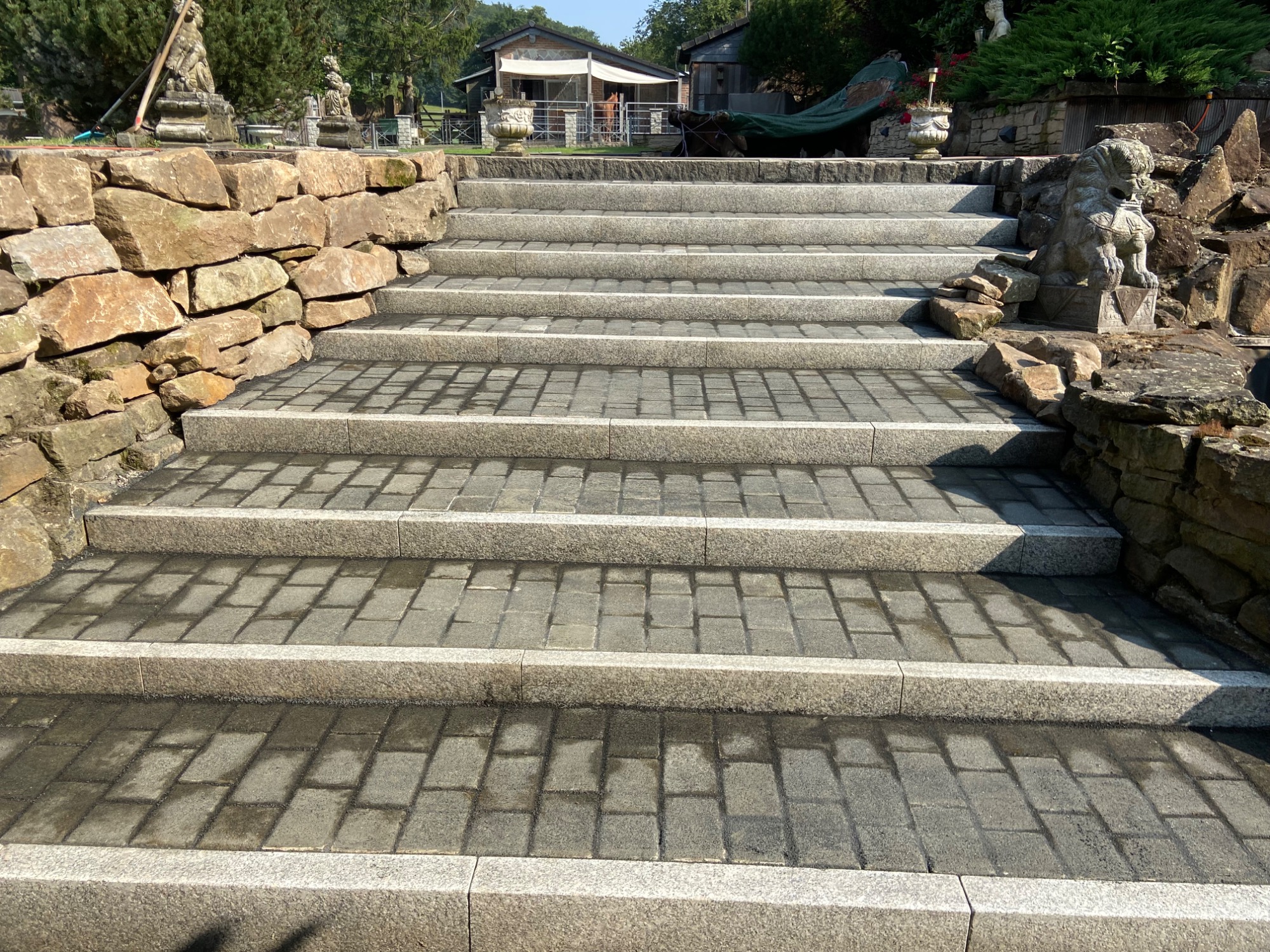 Von stilvollen Pflasterarbeiten über moderne Treppenanlagen bis hin zu kreativen Mauergestaltungen - wir verbinden handwerkliche Präzision mit ästhetischem Anspruch.